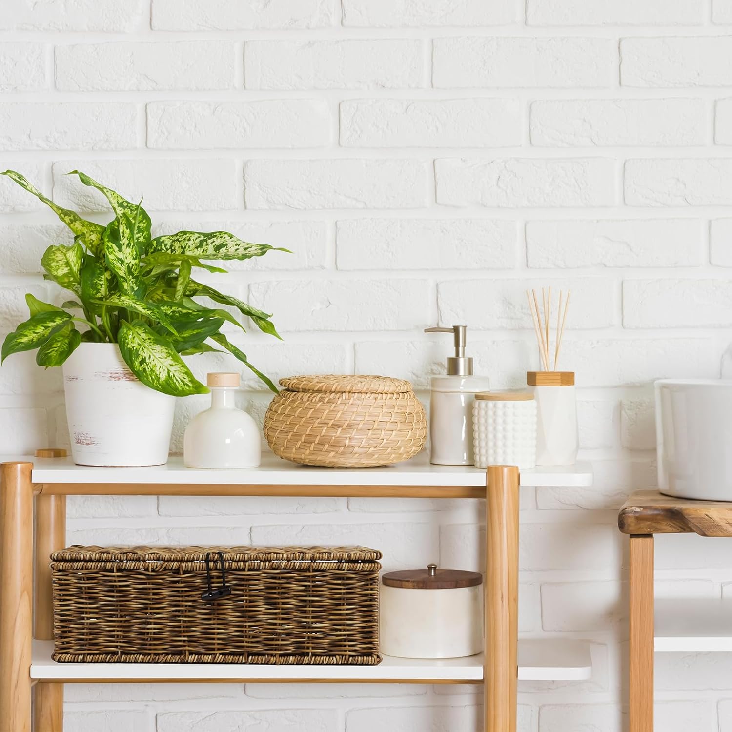 - 【3-Section Basket with Lid】Organization with partitioned storage for categorized items (e.g., makeup, hair accessories, keys). The woven lid provides dust protection and maintains a tidy appearance.