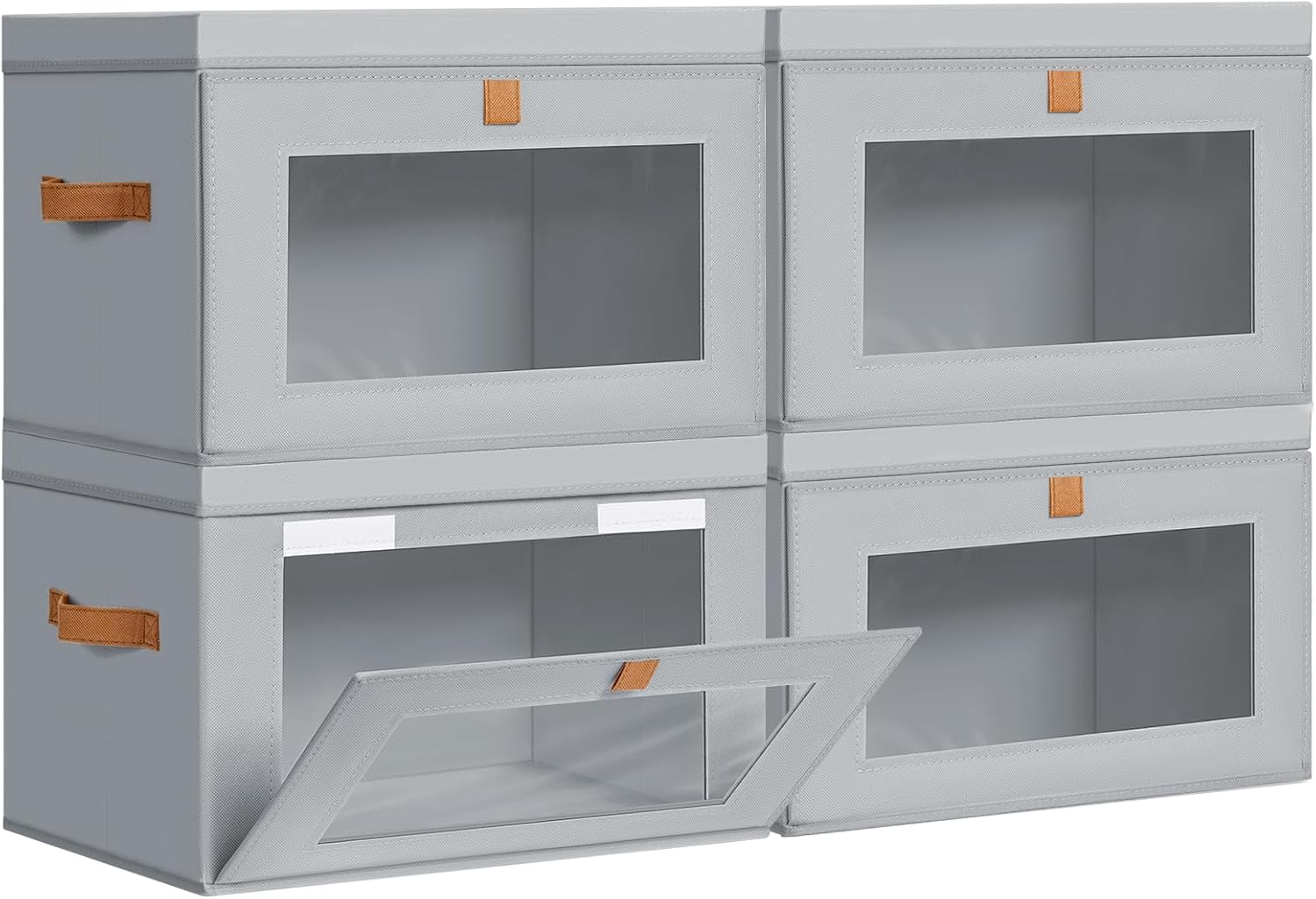 Storage Bins with Lids - 4 Pack Large Fabric Closet Organizer with Window & Handles, Collapsible Decorative Storage Boxes for Shelves Under Bed, Books Clothes Blankets Sweaters Organization
